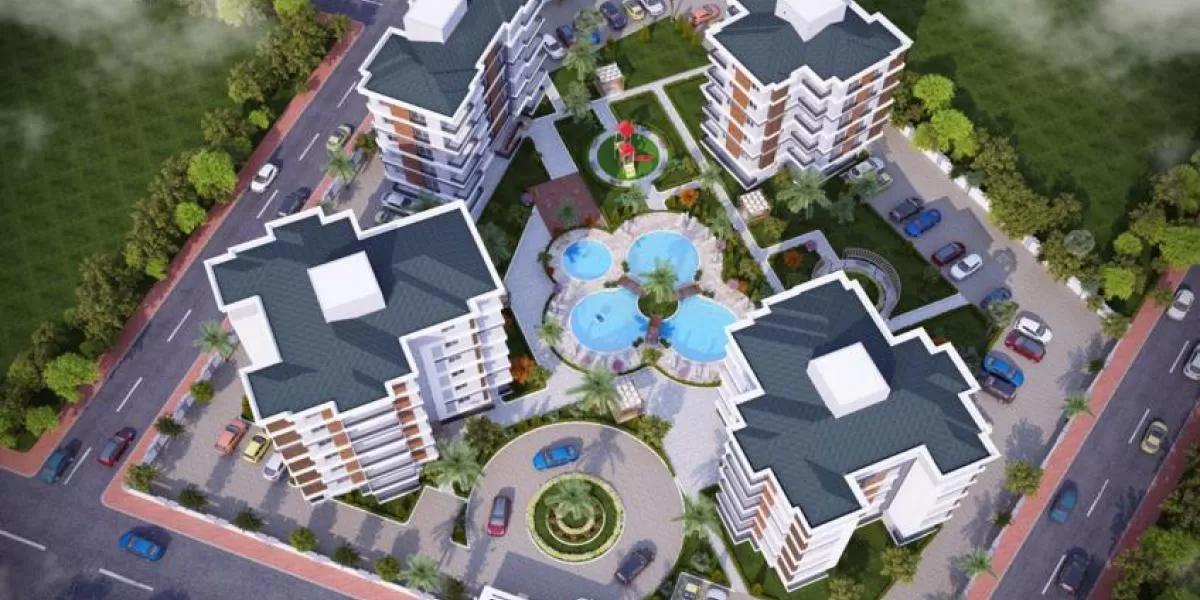 شقق للبيع ضمن مشروع جديد قيد الإنشاء في منطقة كبيز الجديدة في مدينة أنطاليا التركية من ضمن المشاريع الحديثة في المنطقة.
