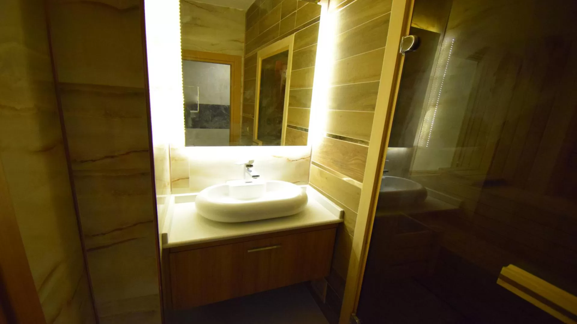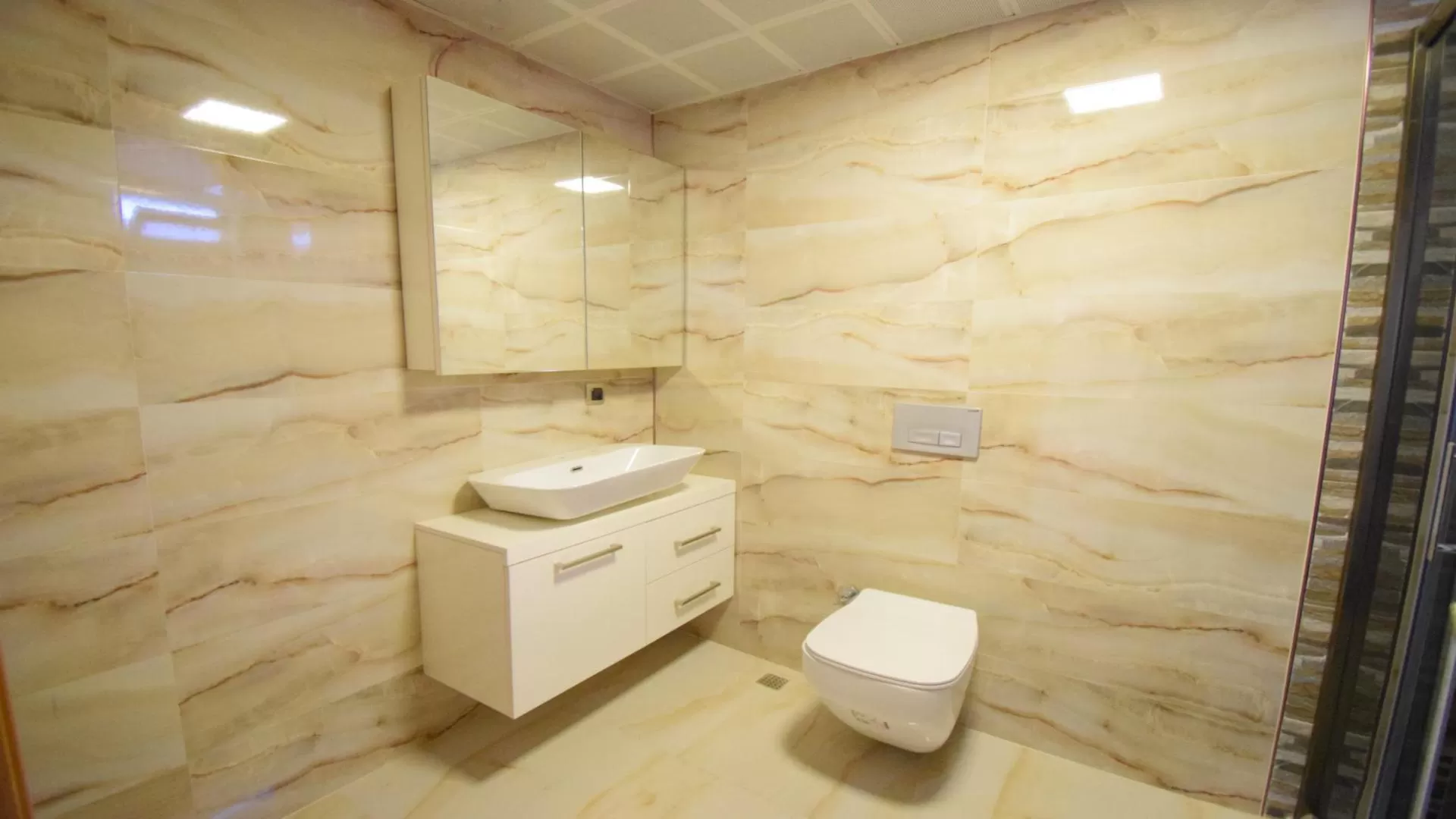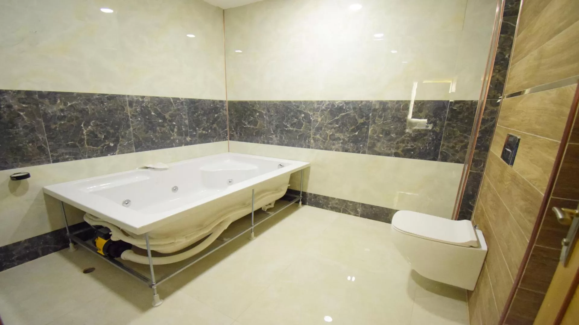 - حمامات مجهزة بـ(خزائن، مغسلة، كرسي، بانيو مزود بجاكوزي)