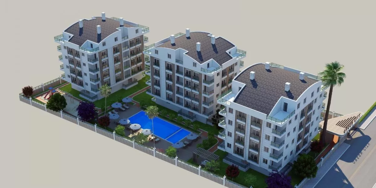 شقق للبيع جاهزة للتسليم في مجمع غرين هومز المتكامل بأحدث مجمعات كونيالتي في انطاليا.