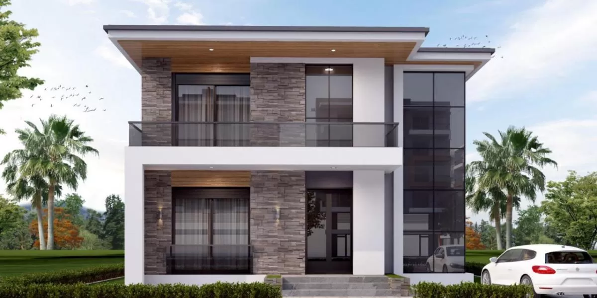 مساحة البناء 325م الفيلا مكونة من 4 غرف نوم، صالون، مطبخ، 4 حمامات، 4 بلكونات، تراس، مسبح خاص، كراج خاص، وحديقة.