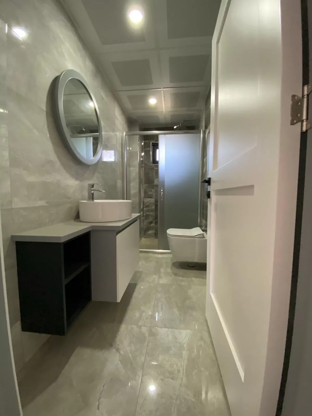 7- 5 حمامات مجهزة بـ(مغسلة، خزانة، كرسي، بيكاوش)