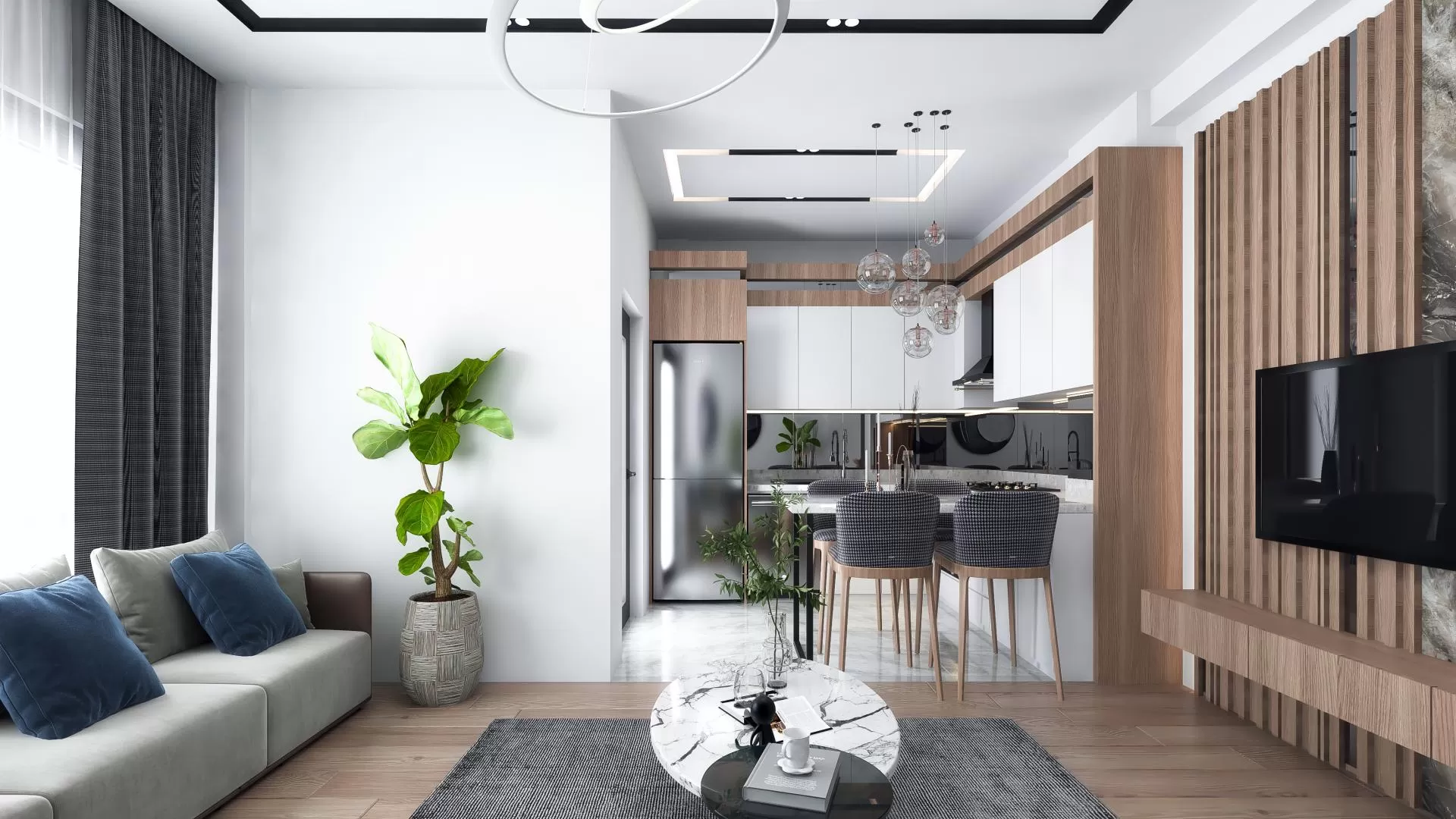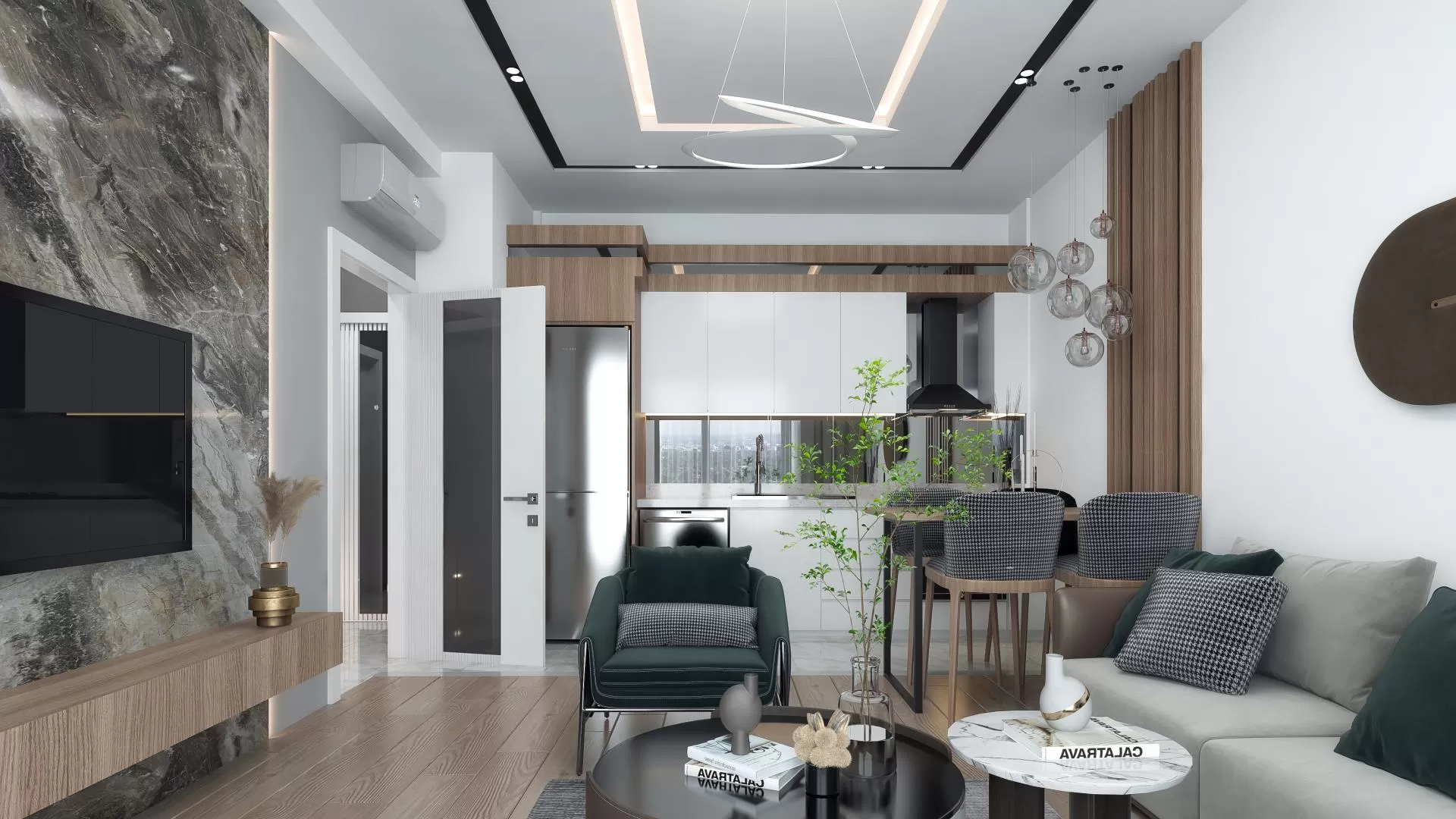 يحتوي المجمع الفاخر الذي يوفر نمط حياة عالي الجودة على شقق 1+1 و 2+1. شقق فاخرة بها غرفة معيشة و حمام و شرفة.وتم تجهيز هذه الشقق بباب فولاذي،، أدوات المطبخ، طاولة طعام،نظام إضاءة سبوت و LED، و نوافذ و ستائر PVC، بنية تحتية لمكيفات الهواء