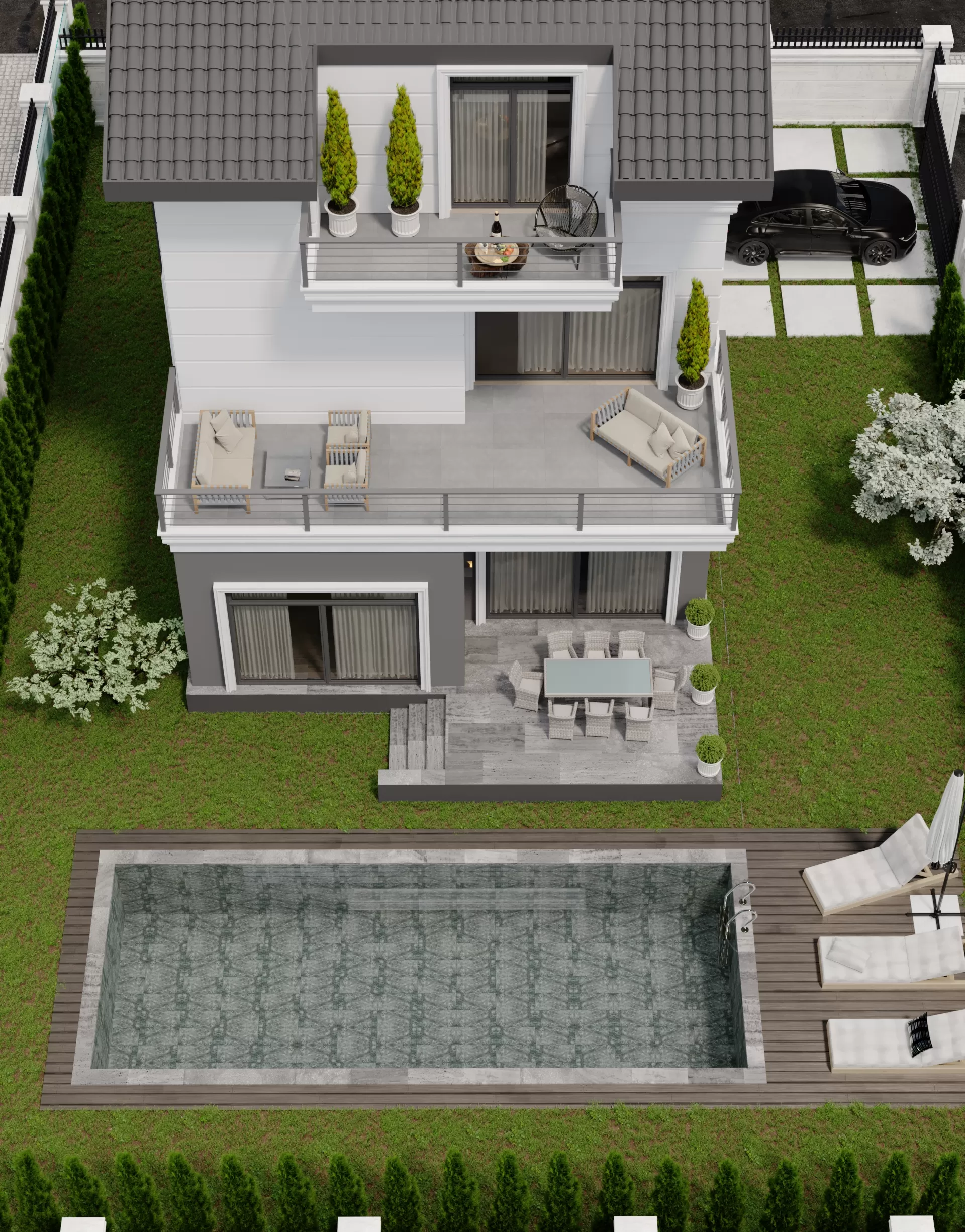 1كم تبعد عن الفيلا المستقلة للبيع في انطاليا كل من المستشفى الحكومي والمدارس والمركز.