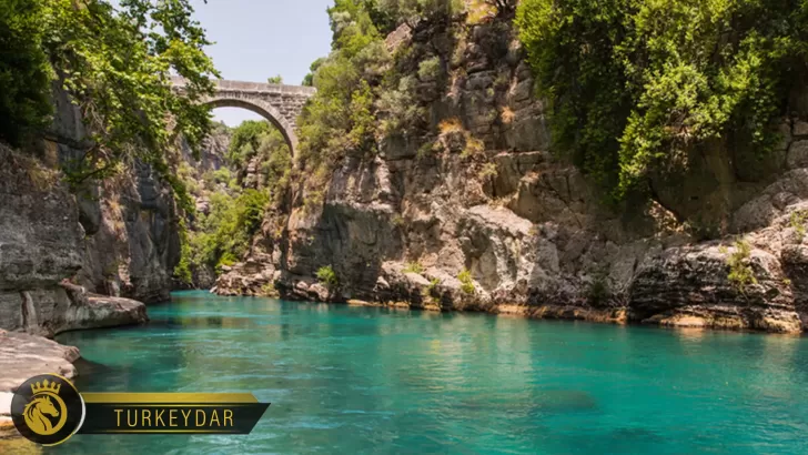 جسر ونهر كانيون انطاليا بقعة طبيعية غاية في السحر تبعد 90 كم عن مركز انطاليا، يقع النهر في وادي ضيق محاط بالجبال ويتميز كانيون انطاليا بانه المكان الاول لممارسة رياضة التجذيف في انطاليا، يقصده سنويا المئات من الزوار لمدينة انطاليا المزدحمة بمناظرها وبقاعها الخضراء، وايضا مايتميز به كانيون انطاليا جسره التاريخي العائد لمئات السنين الماضية،