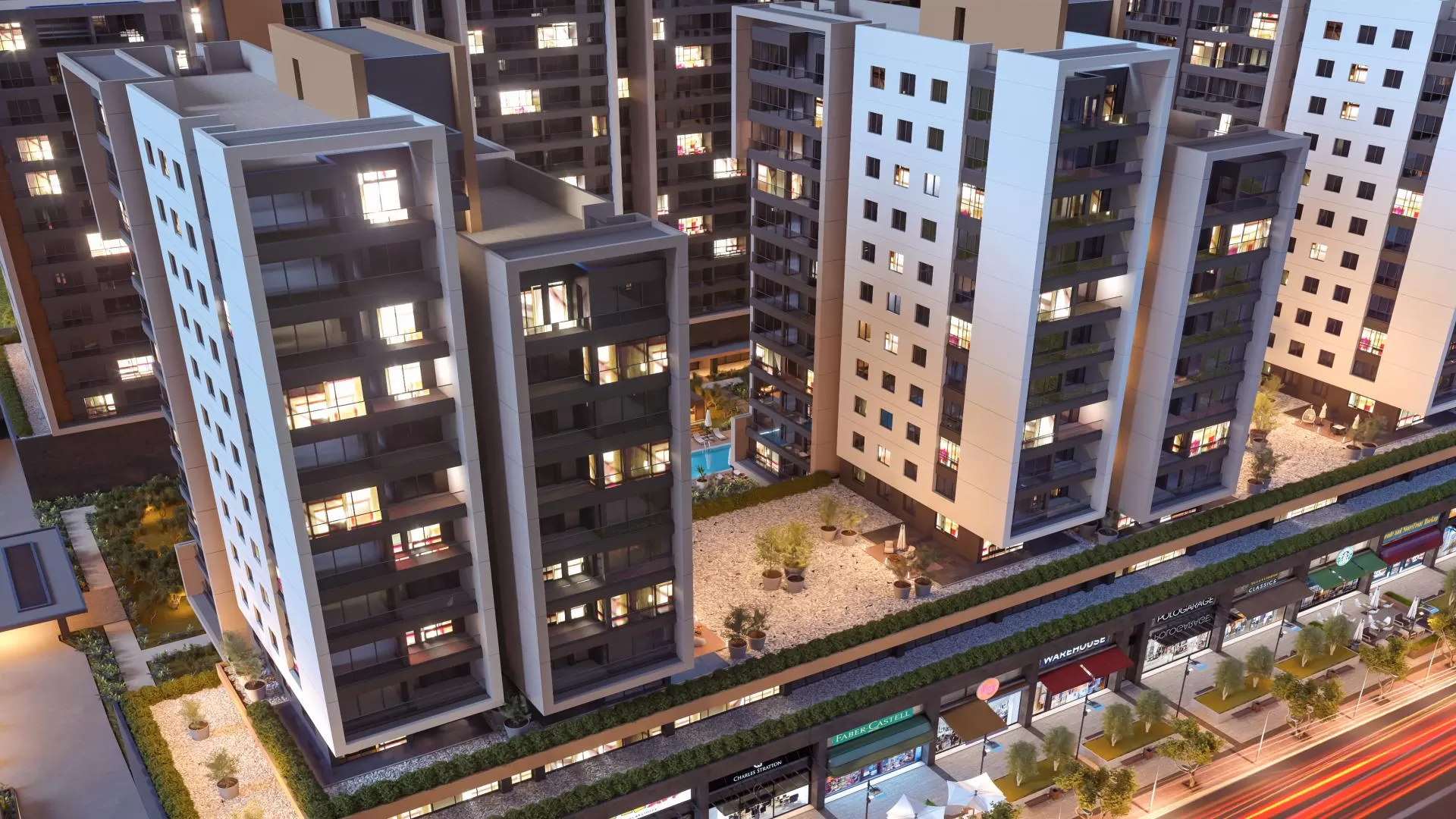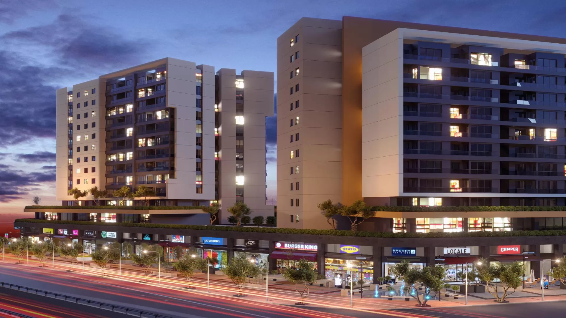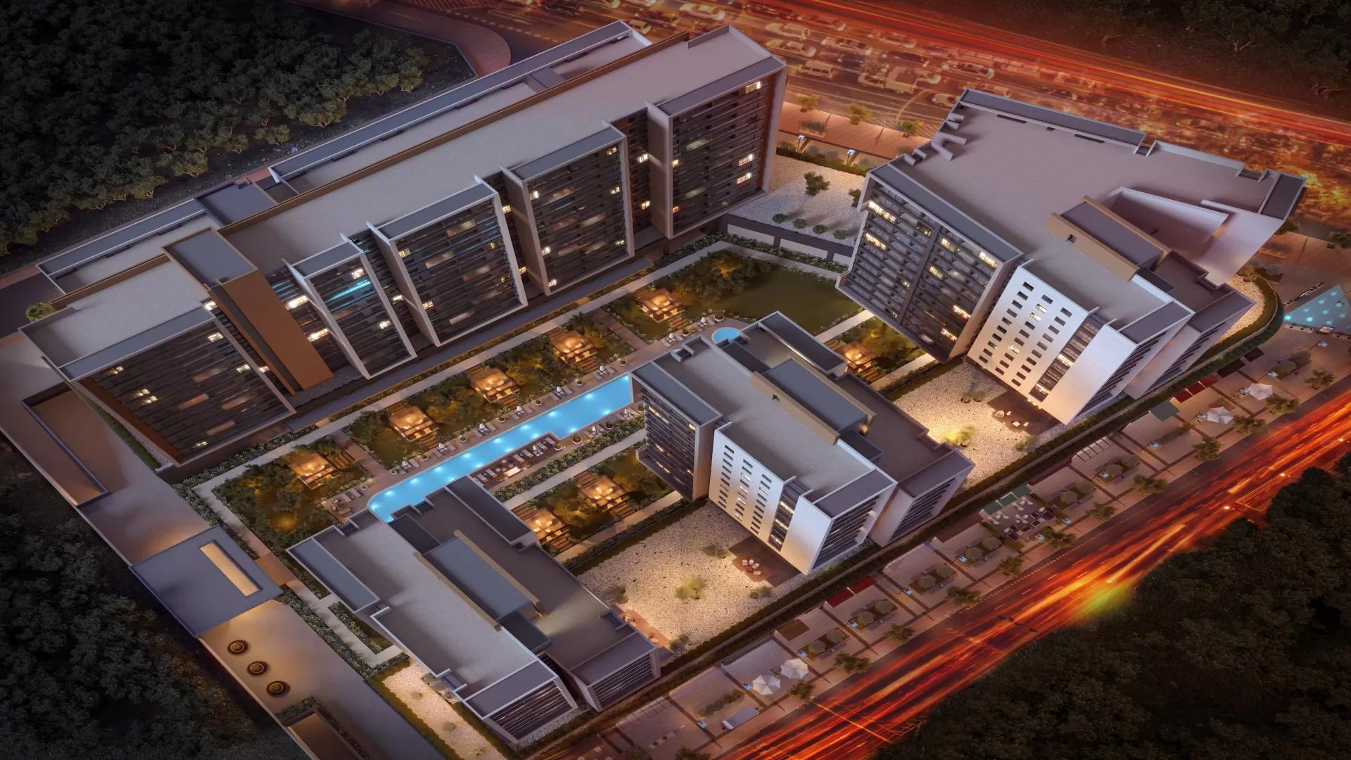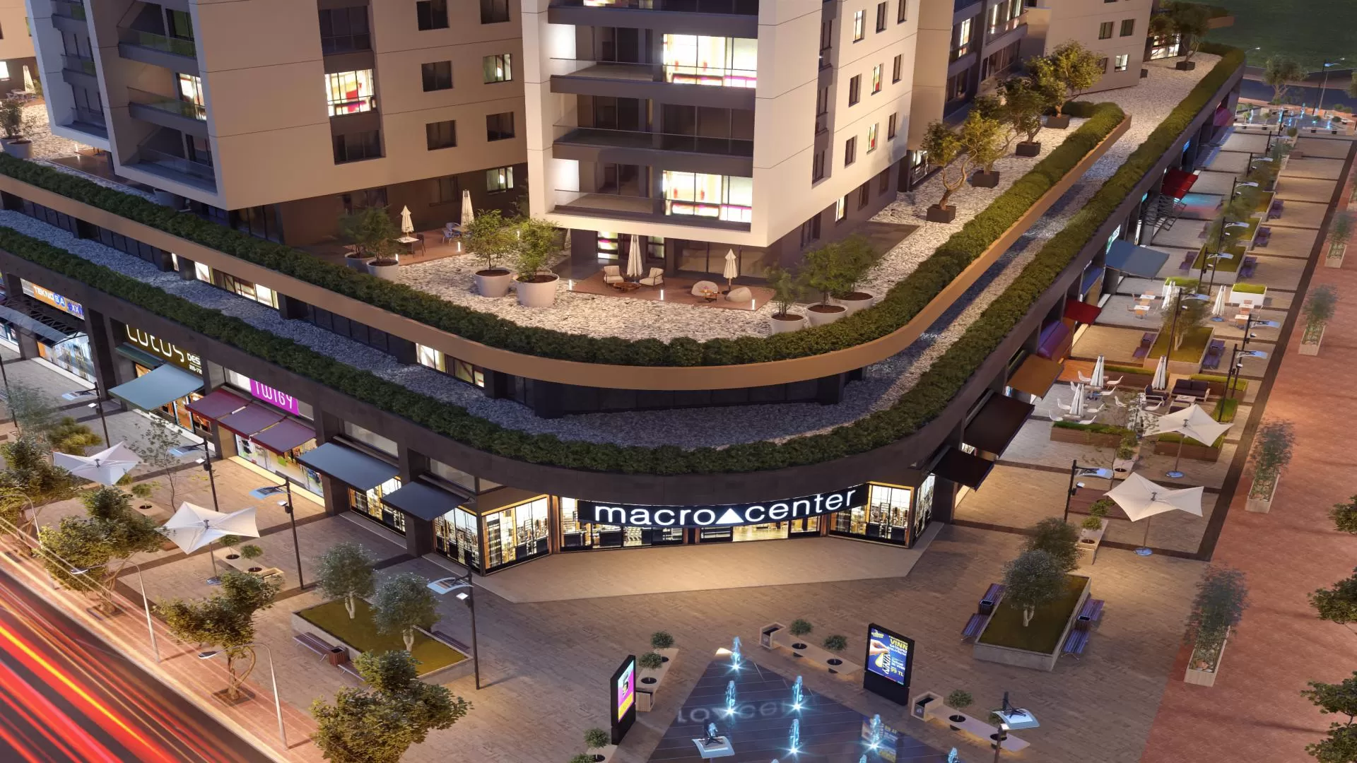 The compound consists of 359 luxury apartments for sale with vital types, two, three ,or four bedrooms and a livingroom. as well as 18 commercial offices and 33 shops.