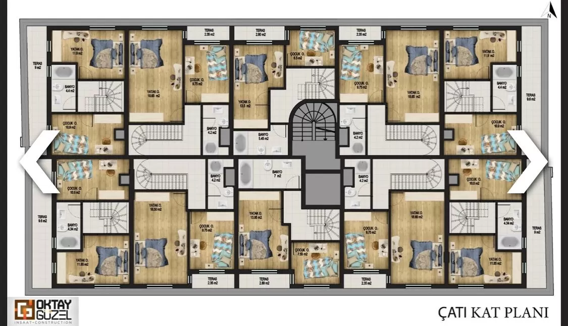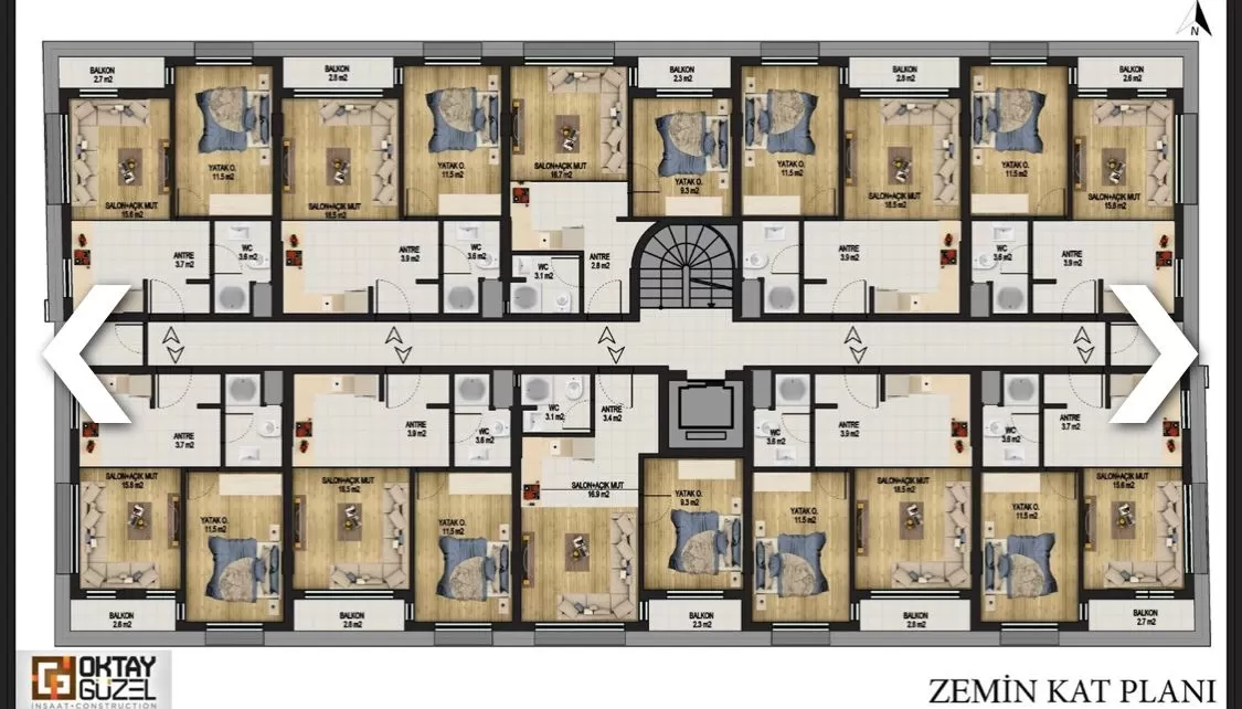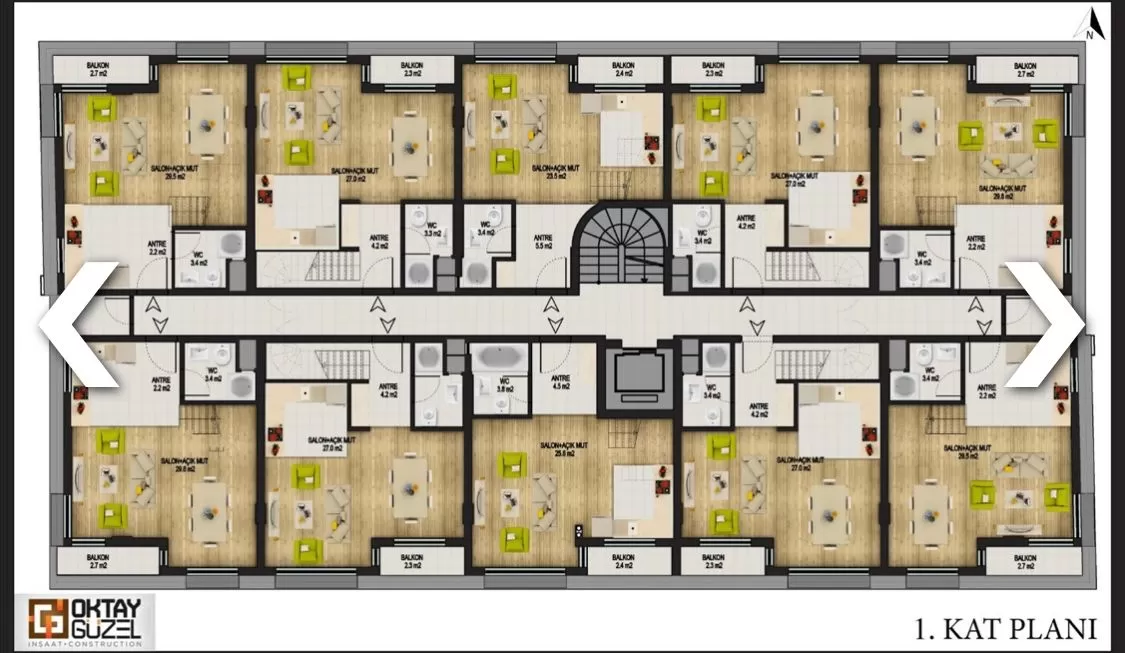 The project is equipped with high quality building materials, high quality control cameras 24/7 and a colorful internal intercom system, guarding and security