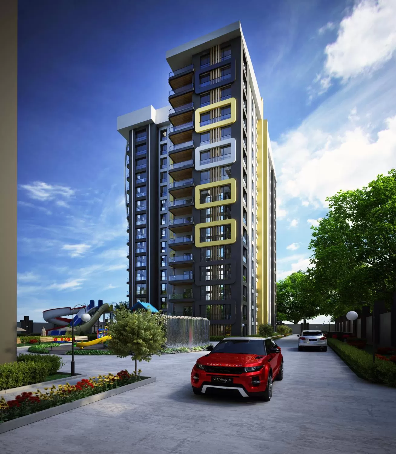 An integrated residential complex consisting of two buildings with a total of 150 apartments with unique architectural designs.